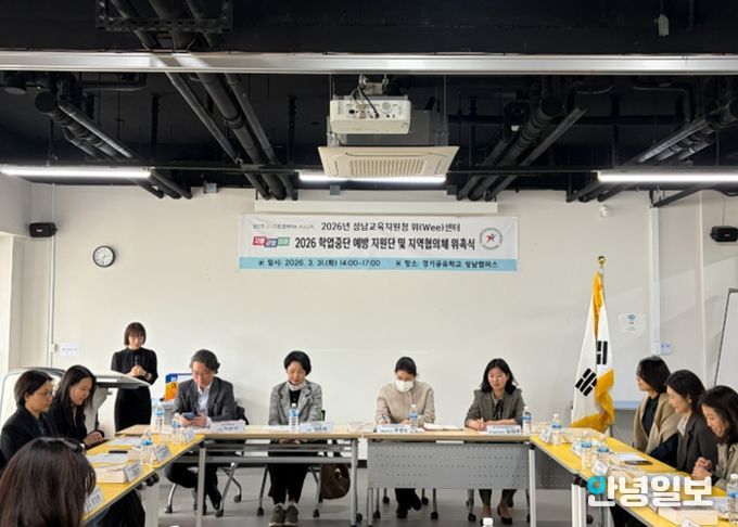 안녕일보 배윤 기자 | 경기도성남교육지원청 위(Wee)센터는 지난 3월 31일, 경기공유학교 성남캠퍼스에서 ‘2026 학업중단 예방 지원단 및 지역협의체 위촉식’을 개최했다.