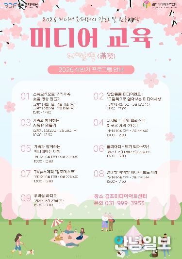 안녕일보 배윤 기자 | (재)김포문화재단은 김포미디어아트센터에서 오는 4월부터 11월까지‘미디어 리터러시 강화 및 진로탐색 프로그램’을 본격 추진한다고 밝혔다. 이번 사업은 디지털 환경 변화에 대응하여 시민의 미디어 이해 및 활용 역량을 체계적으로 강화하고, 창의적 미래 인재 양성을 위한 교육 기반을 구축하는 데 목적이 있다.