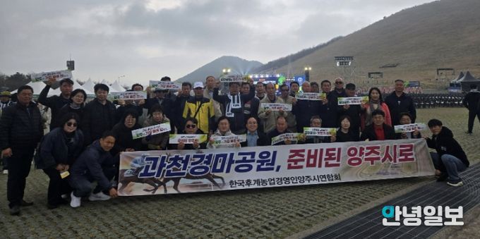 안녕일보 배윤 기자 | 양주시 농업경영인회가 3월 31일 제주도에서 열리는 전국대회에 참가해 ‘과천경마공원 양주시 유치’를 위한 현장 홍보전을 펼쳤다.