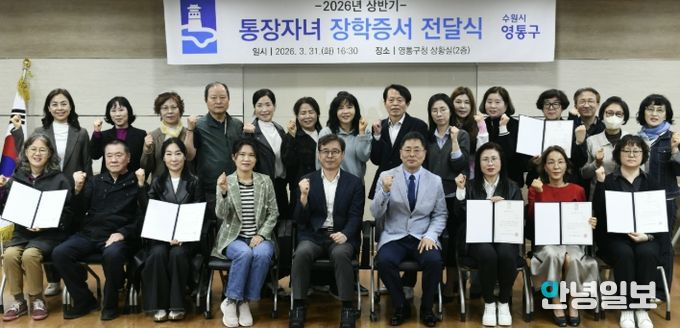 안녕일보 배윤 기자 | 수원시 영통구는 지난 3월 31일 구청 상황실에서 2026년 상반기 통장자녀 장학증서 전달식을 개최했다.
