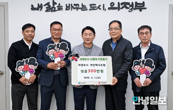 안녕일보 배윤 기자 | 의정부시는 4월 1일 의정부시 개인택시조합이 성금 300만 원을 기탁했다고 밝혔다.