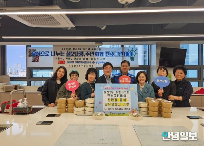 안녕일보 배윤 기자 | 광명시 철산2동 주민자치회는 지난 1일 지역 주민들과 함께 저탄소·친환경 식재료로 만든 음식을 ‘광명마을냉장고(연서로 10)’에 기부하며 탄소중립 실천에 앞장섰다.