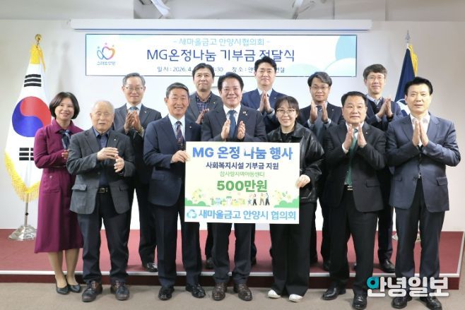 한편, ‘MG온정나눔’은 새마을금고가 지역 사회와 상생하기 위해 추진하는 맞춤형 사회 공헌 사업으로, 안양시 새마을금고협의회는 지난 2024년부터 사회 복지 시설 후원과 아동 양육 시설 물품 기탁 등 지역 사회를 위한 공헌 활동을 3년째 이어오고 있다.