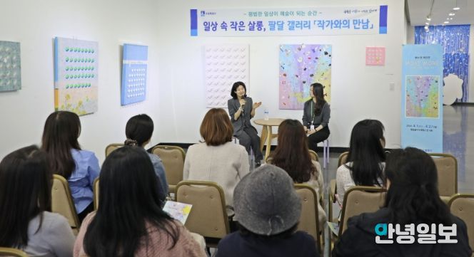 안녕일보 배윤 기자 | 수원시 팔달구는 지난 4월 2일, 팔달구청 1층 팔달 갤러리에서 4월 전시 작가인 현수영 작가를 초청하여 지역 주민들과 함께 소통하는 ‘작가와의 만남’ 행사를 개최했다고 밝혔다.