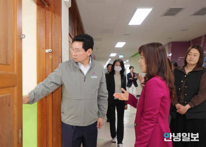 학부모들의 요청에 따라 진행된 이날 교통 봉사에서 이 시장은 교통지도에 앞서 학교 도서관 조성 현장을 방문해 교육환경 개선사업 추진 현황을 확인하고, 학교 관계자들과 함께 통학로와 학교 시설 전반을 점검했다.