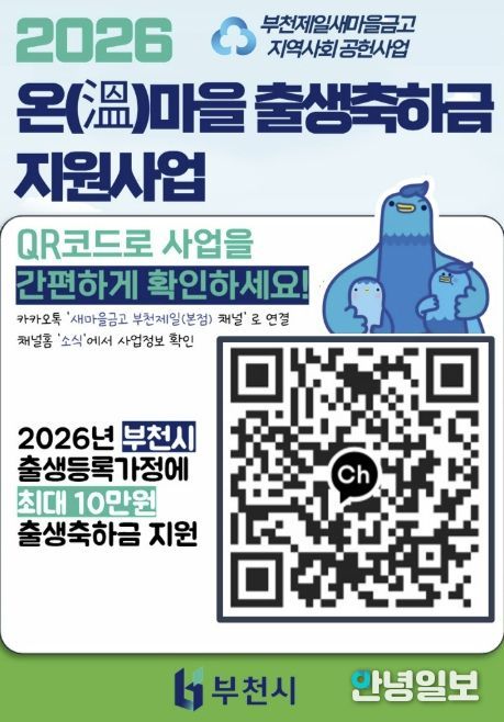 안녕일보 배윤 기자 | 부천시는 저출생 위기 극복을 위해 민관이 협력하는 ‘2026년 온(溫)마을 출생축하금 지원사업’을 시행한다.