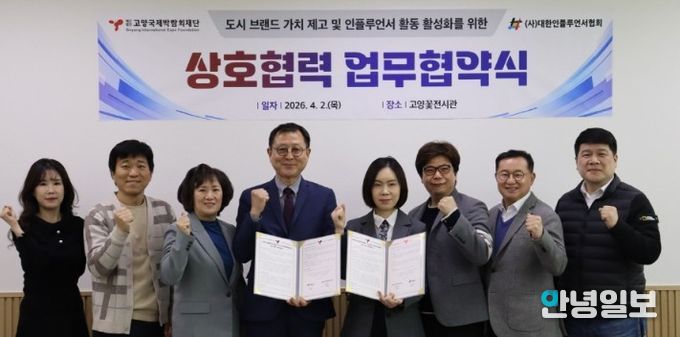 안녕일보 배윤 기자 | 재단법인 고양국제박람회재단은 지난 2일 (사)대한인플루언서협회와 고양특례시의 도시 브랜드 가치 제고와 공공 홍보 활성화를 위한 업무협약(MOU)을 체결했다.