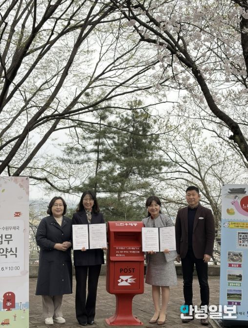 양 기관은 협약에 따라 ▲느린우체통 설치 및 장소 제공 ▲서신 수집·배달 ▲수원 방문의 해 기념 맞춤형 엽서 제작·판매 등을 협력하기로 했다.