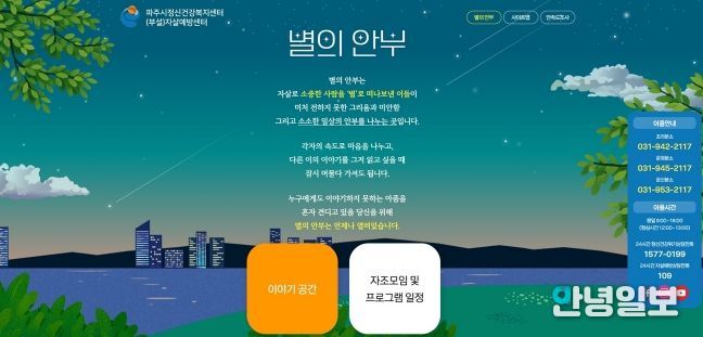 안녕일보 배윤 기자 | 파주시정신건강복지센터는 자살로 가족, 지인을 잃은 유족을 위해 온라인 애도 공간 ‘별의 안부’를 운영한다.