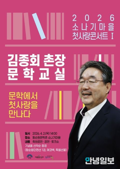 안녕일보 배윤 기자 | 황순원문학촌 소나기마을은 지난 4월 2일 오후 2시 ‘2026 소나기마을 첫사랑콘서트 김종회 문학교실’을 성황리에 개최했다고 밝혔다. 이번 행사는 황순원 탄생 111주년을 기념해 기획된 ‘2026 소나기마을 문학교실’과 공동으로 마련됐다.
