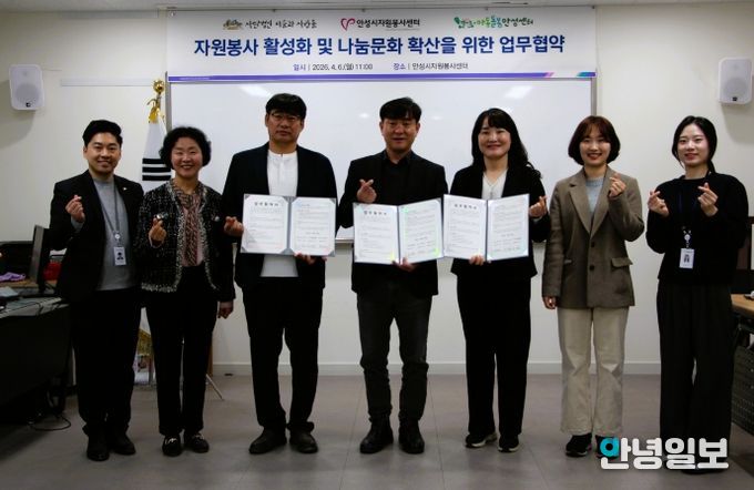 안녕일보 배윤 기자 | 안성시자원봉사센터는 지난 6일, 안성시자원봉사센터 강의실에서 (사)마을과사람들, 경기도아동돌봄안성센터와 지역사회 복지 발전 및 나눔 문화 확산을 위한 업무협약을 체결했다.