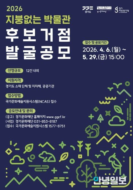 안녕일보 배윤 기자 | 경기도와 경기문화재단은 대표적인 경기도 지역문화 브랜드인 ‘지붕없는 박물관’ 사업의 지속 가능한 운영 기반을 마련하고, 지역의 잠재적 문화 자산의 발굴과 활용을 위해 ‘2026년 지붕없는 박물관 후보거점 발굴 공모’를 추진한다.