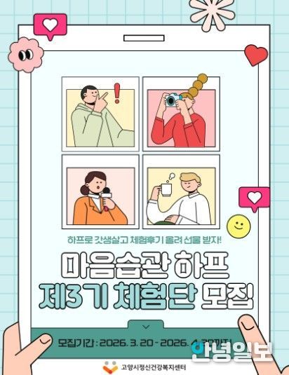 안녕일보 배윤 기자 | 고양특례시 고양시정신건강복지센터는 오는 30일까지 제3기‘마음습관 하프’체험단을 모집한다.