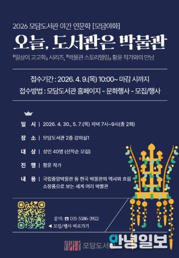 안녕일보 배윤 기자 | 김포시 모담도서관에서는 4월 30일과 5월 7일 저녁 7시부터 9시까지 ‘오늘, 도서관은 박물관’ 강좌를 운영한다.