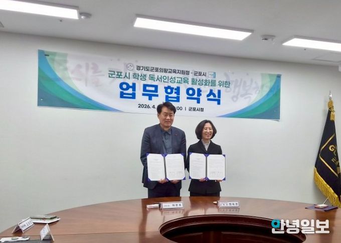 안녕일보 배윤 기자 | 경기도군포의왕교육지원청과 군포시는 4월 8일 군포시청에서 '지역독서 징검다리'사업 추진을 위한 독서인성교육 활성화 업무협약을 체결했다.