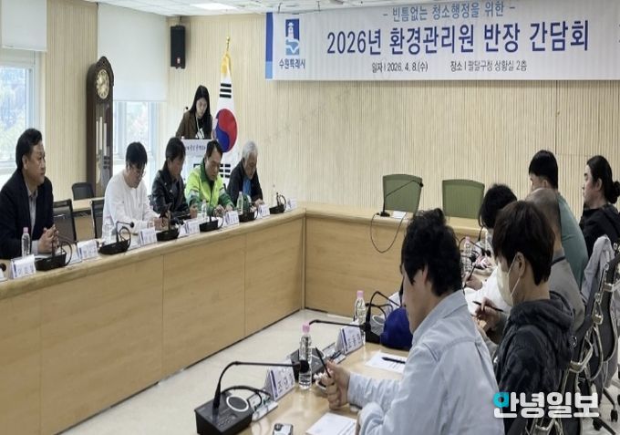 안녕일보 배윤 기자 | 수원시 팔달구는 지난 8일, 관내 각 동 행정복지센터 환경관리원 반장들과 간담회를 가졌다.