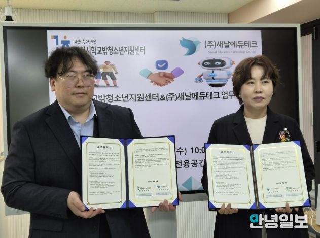 안녕일보 배윤 기자 | 과천시청소년재단 학교밖청소년지원센터 ‘과천꿈드림’은 4월 8일 두 번째 샛뜨락에서 ㈜새날에듀테크와 학교밖청소년 대상 ‘인공지능(AI) 로봇교육 협력을 위한 업무협약’을 체결했다고 밝혔다.