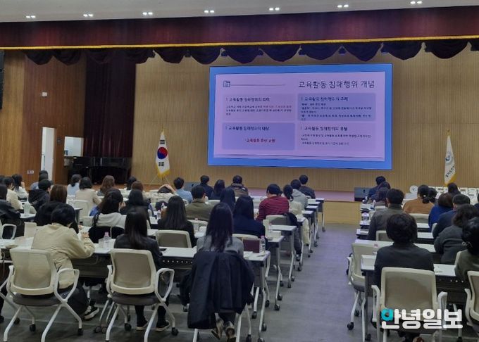 이번 연수는 관내 유·초·중·고 및 특수학교 교육활동 보호 업무 담당자와 희망 교원 130여 명이 참석한 가운데, 교육활동 보호에 대한 현장 이해를 높이고 공정한 사안 처리와 회복 중심 지원 역량을 강화하기 위해 마련됐다.
