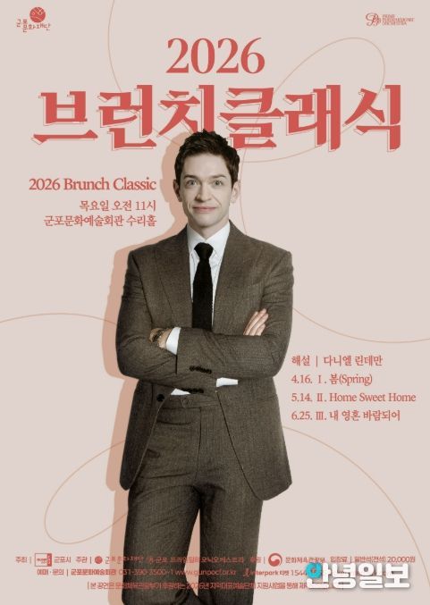 안녕일보 배윤 기자 | 군포문화재단은 2026년 ‘브런치클래식’의 첫 공연을 오는 16일 오전 11시, 군포문화예술회관 수리홀에서 개최한다.
