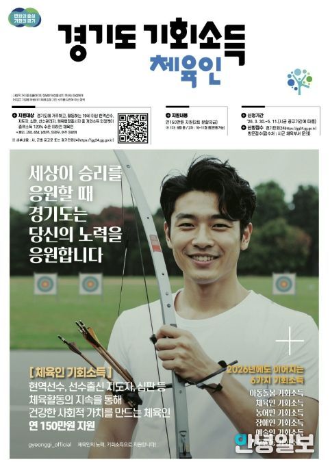 안녕일보 배윤 기자 | 시흥시는 지역 체육인의 안정적인 활동을 지원하기 위해 ‘경기도 체육인 기회소득’ 사업을 추진하는 가운데 오는 5월 11일까지 접수 신청을 받는다.