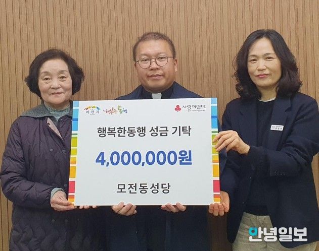 안녕일보 배윤 기자 | 모전동성당은 지난 4월 10일, 지역 내 어려운 이웃을 돕기 위해 신자들이 십시일반 모은 400만 원을 어려운 이웃을 위해 사용해달라며 이천시에 전달했다. 이번 성금은 경제적 어려움 속에서 생활하는 취약계층의 생계 부담을 덜고, 지역사회에 따뜻한 연대 가치를 확산하기 위해 마련된 것으로 실질적인 도움이 필요한 분들에게 사용될 예정이다.