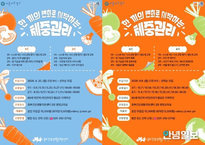 참여 대상은 비만 관리를 통해 건강한 체형 형성이 필요한 60세 미만 지역주민으로, 오는 4월 20일부터 선착순으로 신청할 수 있다.