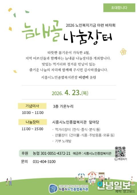이선미 시흥시노인종합복지관장은 “늠내골 나눔장터는 바자회를 넘어 지역주민과 어르신이 함께 어울리며 나눔의 가치를 실천하는 의미 있는 행사”라며 “올해는 지난해보다 더 풍성한 구성으로 준비한 만큼, 많은 지역주민의 관심과 참여를 바란다”라고 말했다