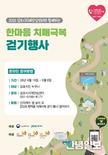 참여를 원하는 김포시민은 스마트폰 애플리케이션에서 ‘인지케어’앱을 설치한 뒤 활동 메뉴의 『2026 한마음 치매 극복 걷기 행사』를 선택하고 ‘참여하기’를 누르면 된다.