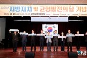 안녕일보 배윤 기자 | 구리시의회는 10월 29일 ‘지방자치 및 균형발전의 날’을 맞이하여 기념식을 비롯한 다양한 부대행사를 성황리에 마무리했다. ‘지방자치 및 균형발전의 날’은 1987년 6월 민주항쟁의 결과로 그해 10월 29일 대통령 직선제와 지방자치제의 부활을 담고 있는 9차 개헌이 이루어진 것을 기념하기 위해 제정됐으며, 2012년 제정 당시에는 ‘지방자치의 날’이었으나 2023년 7월 10일 현재의 이름으로 바뀌었다. 올해로 세 번째를 맞는 이번 기념행사는 ‘지방자치의 양 수레바퀴’라 할 수 있는 구리시와 공동주최하고, 구리시주민자치협의회와 공동주관하여 지방자치의 의미와 가치를 더했다. 이날 기념식에서는 엄진섭 구리시 부시장과 구리시주민자치협의회 박승원 회장 및 주민자치 위원 그리고 김용호 의정회 회장을 비롯한 역대 구리시의회 의원 등 200여 명이 참석하여 자리를 빛냈으며, 지방자치 발전을 위해 헌신한 지역주민 등 유공자 30명에게는 구리시의회 의장, 구리시장, 구리시 국회의원 표창을 수여했다. 이번 행사에는 기념식뿐 아니라 구리시 실버합창단이 사전공연으로 아름다운 화합의 하모니를 뽐냈