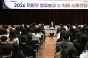 안녕일보 배윤 기자 | 고양특례시는 지난 26일 덕양구청 대회의실에서 ‘2026년 덕양구 업무보고 및 직원 소통간담회’를 개최했다. 업무보고에는 이동환 고양시장과 주시운 덕양구청장을 비롯해 구청 13개 과·21개 동행정복지센터의 부서장, 8·9급 저연차 공무원 등 100여 명의 직원이 참석했다. 2026년 업무보고는 주시운 덕양구청장과 부서장의 보고를 통해 민선8기 덕양구 핵심 성과와 2026년 업무 추진 방향을 간략히 공유하고, 직원들과의 자유로운 토론 시간을 확대해 현장의 목소리를 청취하는 데 중점을 뒀다. 이날 부서별 업무보고와 관련해 이동환 시장은 ▲덕양구를 대표하는 창릉천 유채꽃·코스모스 축제의 성공적 개최를 위한 주관 부서와 행신2동 행정복지센터의 적극적인 협조 ▲지적재조사 사업 등 시민 불편 해소를 위한 주요 사업의 속도감 있는 추진을 당부했다. 특히 20~30대 직원들과 격의 없이 소통하는 자유토론 시간이 눈길을 끌었다. CES 2026에서 고양시에 도입하고 싶다고 생각한 기술 분야, 전 세계적인 주목을 받은 ‘고양콘’에 대한 궁금증 등 다양한 주제로 활발한 의견 교환이 이어졌다. &