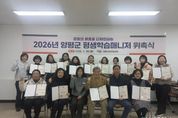 안녕일보 배윤 기자 | 양평군은 26일 평생학습센터에서 ‘2026년 양평군 평생학습매니저 위촉식’을 성황리에 개최했다. 군은 이번 위촉식에서 평생학습매니저 역량 강화 연수를 이수하고 활동 신청서를 통해 지속적인 참여 의사를 밝힌 인원을 대상으로, △학습 여행 운영 참여 실적 △회의 참여도 △관련 사업 기여도 등 활동 전반의 성실성을 평생학습매니저 평가표에 따라 종합적으로 심사해 최종 17명의 평생학습매니저를 공식 위촉했다. 위촉된 평생학습매니저들은 앞으로 1년간 지역 평생학습 활성화를 위해 주민의 학습 참여를 독려하고, 평생교육 프로그램 기획·운영 지원, 학습자 상담 및 만족도 조사 등 현장 중심의 역할을 수행하게 된다. 이날 위촉식은 평생교육 관계자와 위촉자들이 참석한 가운데 △위촉장 수여 △향후 활동 계획 공유 △평생학습 발전 과제 논의 등의 순서로 진행됐다. 위촉된 매니저들은 온행복센터(읍·면·동 평생학습센터)와 우리 동네 학습공간을 중심으로 지역 맞춤형 학습 콘텐츠 개발·운영, 학습자 요구 조사, 학습 지원 체계 구축 등에 참여할 예정이다. 전진선 양평군수는 “평생학습매니저는 주민의 삶과 평