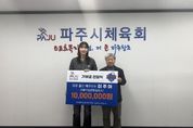 안녕일보 배윤 기자 | 파주가 낳은 배구 인기인(스타)이자 아이비케이(IBK)기업은행 알토스 소속 이주아 선수가 고향 후배들을 위해 1천만 원을 기부하며 남다른 고향 사랑을 전했다. 파주시체육회는 지난 23일 체육회 회의실에서 이주아 선수와 부모, 파주시배구협회 관계자(박희수 회장, 황우연 부회장, 전찬혁 사무국장) 등이 참석한 가운데 기부금 전달식을 개최했다. 이번에 전달된 기부금은 파주 지역 생활체육 활성화를 비롯해 유소년 및 학생 선수 육성, 체육 기반 시설 개선 등 파주시 체육 발전을 위한 다양한 사업에 사용될 예정이다. 이주아 선수는 “고향 파주에서 많은 응원과 도움을 받으며 운동을 시작했고, 덕분에 지금의 자리까지 올 수 있었다”라며, “지역 체육 발전과 후배 선수들에게 작게나마 힘이 되고자 기부를 결심하게 됐다”라고 소감을 밝혔다. 이어 “앞으로도 파주 체육이 더욱 활성화돼 꿈을 키우는 후배들이 더 나은 환경에서 운동할 수 있기를 바란다”라고 덧붙였다. 김종훈 파주시체육회장은 “파주 출신 국가대표 선수로 훌륭하게 성장한 이주아 선수가 고향을 잊지 않고 나눔을 실천해 준 데 대해 깊이 감
