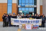 안녕일보 배윤 기자 | 여주시 가남읍 가남농민회(회장 김세종)는 지난 23일 가남읍 행정복지센터를 방문해 관내 취약계층을 위한 백미(10kg) 61포를 기탁하며 새해 따뜻한 나눔의 시작을 알렸다. 이번 기탁은 가남농민회 회원들이 한 해 동안 정성껏 재배한 쌀을 지역사회와 나누고자 마련된 것으로, 전달된 쌀은 관내 저소득 가구와 복지 사각지대에 놓인 이웃들에게 지원될 예정이다. 특히 가남농민회는 지난 2017년부터 매년 직접 수확한 쌀을 기탁해오며 지역사회의 든든한 버팀목 역할을 해오고 있어 지역 내 나눔 문화 확산의 모범 사례로 평가받고 있다. 김세종 회장은 “회원들이 정성으로 키운 쌀이 우리 주변의 어려운 이웃들에게 따뜻한 밥 한 끼의 위로가 되길 바란다”며 “앞으로도 가남읍의 발전과 이웃사랑 실천을 위해 지속적인 나눔 활동을 이어가겠다”고 말했다. 임영석 가남읍장은 “기탁해주신 쌀에는 농민분들의 땀과 정성이 담겨 있어 더욱 뜻깊다”며 “2017년부터 매년 잊지 않고 이웃을 위해 따뜻한 손길을 내밀어 주시는 가남농민회 회원 여러분께 진심으로 감사드린다”고 전했다. 한편, 가남읍 행정