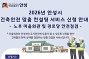 안녕일보 배윤 기자 | 안성시는 올해 ‘건축안전 맞춤 컨설팅 서비스(노후 마을회관 및 경로당 안전점검)’를 시행한다고 밝혔다. 건축안전 맞춤 컨설팅 서비스는 관련 법령상 정기 점검 의무가 없어 정확한 실태 진단과 안전 취약 요소 파악에 어려움이 있는 소규모 노후 마을회관 및 경로당을 대상으로 안전점검을 실시해, 건물 노후화로 인한 안전사고를 예방하고 시민의 안전한 생활환경 조성에 기여하고자 시행하는 사업이다. 점검 대상은 '건축물관리법' 제15조에 따른 소규모 노후 건축물 점검 대상 중 안전에 취약하거나 재난의 위험이 있다고 판단되는 마을회관 및 경로당이다. 주요 점검 항목은 ▲ 건축물 주요 부재의 구조적 균열과 변형 상태 ▲ 건축물 비구조체 결함 사항 ▲ 주변 축대, 옹벽, 담장 등의 안전상태 등이며, 점검자가 직접 현장을 방문해 육안점검 방식으로 진행된다. 점검을 희망하는 마을회관 및 경로당의 소유자 또는 관리자는 신청서를 작성해 안성시청 건축과에 방문 접수하거나 등기우편으로 접수할 수 있으며, 신청은 연중 상시 가능하다. 점검 후에는 건축물 관리자에게 점검 결과와 함께 보수·보강