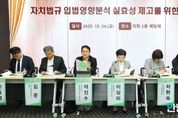 안녕일보 배윤 기자 | 경기도의회와 제주특별자치도의회는 10월 24일 금요일 오후 2시, 경기도의회 2층 예담채에서 '자치법규 입법영향분석 실효성 제고를 위한 토론회'를 공동 개최했다. 이번 토론회는 지방의회의 자치입법 역량을 강화하고, 자치법규의 실효성을 높이기 위한 목적으로 마련됐으며, 양 의회 사무처장, 국회입법조사처 및 지방의회 자치법규 관계자 등 50여 명이 참석하여 열띤 논의를 펼쳤다. 주제발표로는 아주대학교 공공정책대학원 이진수 박사가 자치법규 입법영향분석 평가기준 개선방안에 대해 발표했다. 이어 한국법제연구원 차현숙 혁신법제본부장이 제주의 입법평가 사례를 바탕으로 입법평가의 실효성 확보 방안을, 김준 전 국회입법조사처 실장이 법률 입법영향분석 기준에 대해 각각 발표를 이어갔다. 사례발표로는 경기도의회 김홍 입법조사관이 도의회 사후입법영향평가 현황과 과제를, 국회입법조사처 이동영 입법조사관이 국회입법조사처 입법영향분석 사례를 소개했다. 이후 경복대학교 복지행정학과 이상미 교수를 좌장으로 한 자치법규 입법영향분석 제도의 실효성을 높이기 위한 종합토론이 진행됐다.
