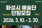 안녕일보 배윤 기자 | 화성시문화관광재단은 2026년 ‘화성시 예술단’을 이끌어갈 오케스트라 및 국악단 단원을 모집한다. 화성시 예술단은 화성시문화관광재단이 운영하는 공공 예술단체로, 2020년 창단 이래 국악단과 오케스트라를 중심으로 기획공연과 화성시 주요 행사에 참여하며 지역 문화예술 활성화에 기여하고 있다. 화성시를 대표하는 전문 예술단체로서 고전부터 현대 음악에 이르는 폭넓은 레퍼토리를 선보이며 시민들에게 수준 높은 공연을 제공하고 있는 화성시 예술단은 연간 30여 회의 공연을 진행하며 ‘정기연주회’, 다양한 테마의 ‘기획공연’, 클래식을 친근하게 풀어내는 ‘마티네 콘서트’, 시민들의 일상 가까이에서 음악을 만날 수 있는 ‘공연투어’ 등 다양한 시리즈를 통해 시민들의 문화 향유 기회를 확대하고 있다. 이번 2차 단원 모집에서는 ▲오케스트라 단원 41명 ▲국악단 단원 14명을 선발할 계획이다. 선발된 단원은 임용일부터 약 6개월간 화성시 예술단의 예술 활동 및 공연 전반에 참여하게 된다. 채용 절차는 서류 심사, 오디션, 면접 전형으로 진행되며, 지원서 접수는 3월 10일부터 3월 30일 오후