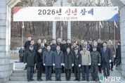 안녕일보 배윤 기자 | 임병택 시흥시장은 병오년 새해를 맞아 1월 2일 오전, 시흥시 논곡동에 있는 현충탑을 찾아 신년 참배로 새해 첫 일정을 시작했다. 이번 신년 참배에는 임 시장을 비롯해 오인열 시흥시의회 의장, 관내 보훈단체 등 70여 명이 참석했다. 임 시장은 참석자들과 현충탑에서 헌화와 분향, 묵념을 함께하며 순국선열과 호국영령의 숭고한 뜻을 기렸다. 참배 이후 시청 늠내홀에서 열린 시무식에 참가한 임 시장은 시의 모든 구성원이 한마음 한뜻으로 서로 소통하고 화합하며 ‘대한민국 대표도시, K-시흥시’를 함께 실현해 나갈 것을 다짐했다. 임병택 시흥시장은 시무식에서 “60만 시민의 평범한 행복을 향해 흔들림 없는 시정을 추진할 것”이라며 “시민 행복과 시흥 발전을 위해 힘차게 나아가자”라고 말했다.