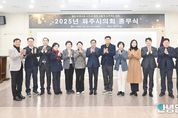 안녕일보 배윤 기자 | 파주시의회는 12월 31일 오후 2시, 파주시의회 1층 세미나실에서 2025년 종무식을 개최하면서 우수의원 표창에 대한 표창 전수식을 진행했다. 우수의원 표창은 대한민국 시·군자치구의회의장협의회장 표창 1건, 경기도 시·군의회의장협의회장 표창 3건, 경기도 북부시·군의장협의회장 표창 3건으로, 2025년 한 해 동안 의욕적인 의정활동을 펼친 지방의회 의원의 노고를 격려하고 우수한 의정활동 사례를 알리고자 마련됐으며, 각 협의회장을 대신해 파주시의회 박대성 의장의 대독 전수로 수여됐다. 먼저, 손성익 의원은 지방의회 의원으로서 투철한 사명감과 봉사정신을 발휘하여 의정 발전과 주민 화합을 위해 노력한 공으로 대한민국 시·군자치구의회의장협의회 대한민국지방의정봉사상 수상의 영예를 안았다. 이어서, 이익선 의원(공약실천 부문), 이정은 의원(의정활동 개선 부문), 오창식 의원(행정감사 부문)은 적극적인 의정활동을 펼친 공로가 인정되어 경기도 시·군의회 의정활동 우수의원 수상자로 선정됐다. 마지막으로, 이혜정 의원(행정감사 부문), 윤희정 의원(의정활동개선 부문), 최유각 의원(지역경제