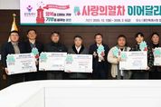 안녕일보 배윤 기자 | 2026년 붉은 말의 해, 용인특례시 사랑의 열차 이어달리기에 지역사회 따뜻한 나눔의 손길이 이어지고 있다. ‘사랑의 열차 이어달리기’는 용인의 대표 연말연시 이웃돕기 운동이다. 시는 지난해 12월 3일 시청 컨벤션홀에서 ‘희망 2026나눔캠페인 사랑의 온도탑제막식 및 사랑의 열차 이어달리기 발대식’을 열었다. ‘사랑의 열차 이어달리기’는 2월 6일까지 총 68일 동안 이웃돕기 성금 14억 원 모금을 목표로 이뤄진다. 삼성노블라이프 주식회사가 지난해 12월 23일 바자회 수익금 534만9000원을 기탁했다. 같은 날 에버찜질사우나는 성금 500만원을, ㈜토오텍 성금 200만원을, ㈜액션테크는 627만원 상당의 소화기 230대를 시에 기탁했다. 또 ㈜경자네식구들은 350만원 상당의 밀키트 1,000개를, 용인시 기업지원과는 성금 100만원을 전달했다. 수지구청 직장어린이집은 지난해 12월 29일 어려운 이웃에 전달해 달라며 라면 366개를 기탁했다. 이영애 원장은 “아이들이 직접 보고 느끼는 나눔의 기쁨을 통해 진짜 크리스마스의 의미를 느낄 수 있었을 것”이라고 했다. &nbs