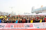 안녕일보 배윤 기자 | 이천시자원봉사센터는 11월 14일 이천종합운동장 서문 입구 자원봉사자탑 앞에서 자원봉사자 240여 명이 참여한 가운데 ‘2024 사랑의 김장김치 나눔’ 행사를 성공적으로 개최했다. 이번 행사는 탑머티리얼, 지엘산업개발, SK하이스텍, 세람저축은행, 이천중앙로타리클럽 등 5개 기업·단체의 지정기탁금 4,500만 원과 경기사회복지공동모금회의 후원으로 추진됐다. (재)이천시자원봉사센터가 주최·주관하여 지역사회에 온정을 전하는 의미 있는 나눔을 실천했다. 특히 올해 김장에는 기탁 기업 임직원과 장애인, 다문화가정, 북한이탈주민, 외국인 근로자 등 다양한 지역 구성원이 함께 참여해, 김장을 담그며 서로의 따뜻한 마음을 나누는 다문화·포용형 행사로 진행됐다. 이날 담근 김장김치 5,000포기는 이천시 14개 읍면동 행정복지센터와 사회복지기관을 통해 저소득층, 홀몸 어르신 등 지역 내 취약계층 1,100가구에 전달됐다. 김경희 시장은 “추운 날씨에도 참여해 주신 기업, 단체, 자원봉사자 여러분께 깊이 감사드린다”라며 “올해는 규모가 더욱 확대됐지만 모두의 따뜻한 마음 덕분에 행사를 잘 마