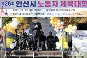 안녕일보 배윤 기자 | 안산시는 지난 15일 화랑유원지 마사토족구장에서 1,000여 명의 조합원과 가족들이 참여한 가운데 ‘제26회 안산시 노동자 체육대회’를 개최했다고 17일 밝혔다. 안산시 노동자 체육대회는 노동자들의 단합을 도모하고 노동존중 문화를 확산시키는 대표적인 지역 행사로, 노사정이 함께 참여하는 상생과 연대의 상징적 축제의 장으로 자리매김하고 있다. 이번 체육대회는 한국노총 안산지역지부(의장 방운제)가 주최·주관했으며, 노동자 간의 화합과 연대 강화, 가족이 함께하는 참여의 장으로 마련됐다. 이날 행사에서는 족구, 줄다리기, 단체줄넘기 등 조직력 강화 종목과 노동자 가족이 함께 즐길 수 있는 ‘슈팅복불복’, ‘풍선만들기’, ‘어린이 게임’ 등 가족 참여형 프로그램도 운영이 운영됐다. 특히, 다문화 체험 등 이주노동자를 위한 바자회가 함께 운영돼 ‘노동과 나눔이 함께하는 공동체 안산’의 의미를 더했다. 이민근 안산시장은 “노동자 여러분의 땀과 연대가 안산 발전의 밑거름”이라며 “앞으로도 노동이 존중받고, 일하는 모든 분이 행복한 도시를 만들기 위해 함께 노력해 나가겠다”고