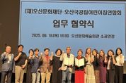 안녕일보 배윤 기자 | 오산문화재단과 오산시국공립어린이집연합회는 지난 9월 18일 오산문화예술회관에서 지역 문화예술 활성화와 어린이 창의력 증진을 위한 업무협약을 체결했다. 이번 협약을 통해 양 기관은 ▲문화예술 프로그램 공동 개발 ▲어린이 대상 공연 및 체험 행사 확대 ▲지역 문화자원 연계 활동 등을 함께 추진할 예정이다. 협약식에 앞서 열린 차담회에서는 영·유아 대상 문화예술 프로그램의 방향성과 실현 가능성, 교직원 대상 혜택 제공 등 실질적인 협력 방안에 대해 심도 있는 논의가 이루어졌다. 신선교 오산문화재단 대표이사는 “이번 협약은 단순한 문서 체결을 넘어 실질적인 협력의 출발점”이라며 “아이들이 문화예술을 통해 감수성과 창의력을 키울 수 있도록 다양한 프로그램을 마련하겠다”고 말했다. 박은희 어린이집연합회 회장은 “보육 현장에 문화예술이 접목되어 아이들의 성장을 돕는 계기가 될 것”이라고 기대를 전했다. 현재 오산문화재단은 공연, 전시, 교육 등 다양한 프로그램으로 시민들의 문화 향유 기회를 확대하고 있으며, 오산시국공립어린이집연합회는 관내 국공립 어린이집의 협력과 발전을 이끄는 대표 단체