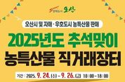 안녕일보 배윤 기자 | 오산시는 민족 최대 명절 추석을 맞아 오는 24일(수)부터 26일(금)까지 3일간 오산시청 광장에서 ‘추석맞이 자매도시 농특산물 직거래장터’를 개최한다고 밝혔다. 올해 직거래장터에는 영동군, 속초시, 순천시, 진도군, 남해군, 장수군, 남원시, 공주시, 오산시 등 총 9개 시군에서 24개 업체가 참여한다. 규모 있는 장터답게 제수용품부터 선물세트까지 명절 상차림에 필요한 다양한 특산품을 만나볼 수 있다. 영동군의 포도·곶감·와인, 속초시의 젓갈류·명태강정, 순천시의 홍차·전통장, 진도군의 김·전복·울금, 공주시의 햇밤과 장류, 남원시의 강정·추어탕, 오산시의 세마쌀·전통주·호두정과 등 전국 각지의 특산품이 한자리에 모인다. 시중보다 저렴하게 판매돼 시민들의 장바구니 부담을 덜어줄 전망이다. 시는 이번 장터를 통해 자매·우호도시 농가에는 안정적인 판로를 제공하고, 시민들에게는 믿을 수 있는 농특산물을 만날 수 있는 기회를 마련해 도농 상생의 의미를 더할 계획이다. 이권재 오산시장은 “추석 장터를 통해 시민들께서 질 좋은 농특산물을 합리적인 가격에 구입하시고, 자매·우호도시 농가