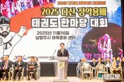 안녕일보 배윤 기자 | 남양주시의회는 16일 남양주체육문화센터 실내체육관에서 열린 ‘다산 정약용배 태권도 한마당대회’에 참석해 참가선수들을 격려했다. 남양주시체육회가 주최하고 남양주시태권도협회가 주관한 이번 대회는 시민 건강 증진과 생활체육 활성화를 위해 마련됐으며, 1500여명의 참가선수들이 품새, 겨루기, 격파, 태권체조, 스피드발차기 등 다양한 종목을 통해 그간 준비한 기량을 마음껏 펼치며 실력을 겨뤘다. 이날 개회식은 조성대 남양주시의회 의장을 비롯해 시의원, 주광덕 시장, 국회의원, 도의원, 강신관 남양주시태권도협회장 등 주요 인사들이 참석했으며, △개회선언 △내빈소개 △표창 및 감사패 수여 △대회사 △환영사 및 축사 △태권도 시범공연 △기념촬영 순으로 진행됐다. 조성대 의장은 축사에서 “실학의 고장 남양주에서 정약용 선생의 배움과 실천 정신이 깃든 이름으로 열린 이번 대회는 그 의미가 더욱 특별하며, 태권도야말로 예의와 질서, 존중의 정신을 배우는 훌륭한 교육”이라고 강조했다. 이어 “상대에 대한 배려와 정정당당한 승부뿐만 아니라 진정한 승리는 이기는 것보다 자신을 이겨내는데 있다는 사실