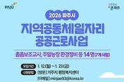 안녕일보 배윤 기자 | 파주시가 오는 23일까지 2026년 상반기 지역공동체 일자리 및 공공근로사업 참여자 14명을 모집한다고 밝혔다. 지역공동체 일자리와 공공근로사업은 취업 취약계층에게 공공일자리를 제공해 최소한의 생계를 보장하고 재취업을 위한 도전의 발판을 마련하기 위한 일자리 지원 사업이다. 지역공동체 일자리사업은 ▲주말농장 환경 정비 ▲촘촘보조교사 ▲마을정원 조성 및 유지관리 등 4개 분야에서 총 11명을, 공공근로사업은 ▲청소년 활동 프로그램 보조 ▲초등 생존수영 프로그램 업무 지원 ▲어린이보호구역 폐쇄회로텔레비전(CCTV) 집중 관제 등 3개 분야에서 총 3명을 각각 모집한다. 선발자들은 3월 3일부터 6월 26일까지 약 4개월간 주 5일 근무하게 되며, 4대 보험 가입과 함께 주휴수당 및 연차수당이 지급된다. 지역공동체 일자리사업의 시간당 임금은 1만 320원이며, 근무일마다 부대비 5천 원이 별도로 지급된다. 공공근로사업의 시간당 임금은 1만 2,070원이다. 참여 자격은 ▲사업개시일 기준 18세 이상 ▲재산 4억 원 이하를 만족하고, 가구소득은 기준중위소득을 기준으로 지역공동체 일자
