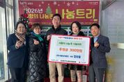 안녕일보 배윤 기자 | 남양주시는 9일 금곡동 소재 ㈜서울빙과총판이 진건읍 위기가구를 위한 후원금 300만 원을 전달했다고 밝혔다. 이번 후원은 진건읍 지역사회보장협의체가 연말연시를 맞아 운영 중인‘진건읍, 사랑의 나눔존 나눔트리’나눔 릴레이의 일환으로 추진됐다. 전달된 후원금은 경기사회복지공동모금회를 통해 진건읍 지역사회보장협의체로 지정 기탁되며, 2026년부터 위기가구 신속 응대 사업 ‘바로지원 꾸러미’에 활용된다. 이 사업은 위기 상황에 놓인 가구에 식료품 등 꾸러미를 신속하게 전달해 일시적인 위기를 완화하고 생활 안정을 도모하는 것을 목표로 한다. 엄관용 대표는 “지역사회와 함께 성장해 온 기업으로서 어려운 이웃에게 실질적인 도움을 되고자 후원을 했다”며 “이번 후원이 위기가구를 위한 신규 사업에 활용된다고 생각하니 더욱 뜻깊다”고 전했다. 김학철 진건퇴계원행정복지센터장은 “민간의 따뜻한 나눔이 위기가구를 신속히 지원하는 중요한 밑거름이 된다”며 “앞으로도 민관협력을 바탕으로 촘촘한 복지 안전망을 구축해 나가겠다”고 말했다. 박현정 진건읍 지역사회보장협의체 위원장은 “이웃을 먼저