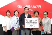 안녕일보 배윤 기자 | 지난 1일 청운사는 하남 사랑愛나눔 성품 및 성금으로 라면 100박스, 백미 10kg 100포, 성금 500만원(1,060만원 상당)을 기탁하고 기탁식을 가졌다. 청운사는 2020년부터 관내 취약계층을 위한 성품 및 성금 기탁을 통해 꾸준한 나눔 문화를 실천하고 있으며, 올해도 하남시에 성품 및 성금을 기탁하며 나눔을 실천했다. 이날 기탁식에는 이현재 하남시장을 비롯하여 청운사 노혜원 사무장, 조순례 신도회장, 김영숙 부회장, 전인숙 총무가 참석하여 자리를 빛냈다. 노혜원 사무장은“지역내 어려운 이웃들에게 조금이나마 도움이 되길 바라고, 풍성한 한가위 명절이 되길 바란다”고 전했다. 이현재 하남시장은“2020년부터 끝임없이 나눔을 실천해 준 청운사에 감사드리며, 어려운 이웃이 따뜻한 추석이 되실 수 있도록 잘 전달하겠다”고 말했다. 이날 기탁한 성금 및 성품은 동 행정복지센터 및 하남시푸드뱅크를 통해 취약계층에게 배부될 예정이다.