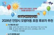 안녕일보 배윤 기자 | 안양시는 어린이날을 맞아 다양한 분야에서 모범이 되는 아동을 발굴하기 위해 ‘2026년 모범아동 유공 표창’ 후보자를 11일부터 25일까지 추천받는다고 11일 밝혔다. 추천 대상은 공고일(11일) 기준 안양시에 주민등록이 되어 있거나, 관내 학교·기관·단체에 소속(재학)된 18세 미만 아동이다. 단, 형사처벌·교내 징계처분을 받았거나, 교내 징계 절차가 진행 중인 경우는 제외된다. 시는 ▲봉사활동 실적 우수 4명 ▲문화예술 분야 우수 2명 ▲과학(수학)·기술 분야 우수 2명 ▲지역사회 발전 유공 4명 ▲모범 생활 8명 등 5개 분야에서 총 20명의 모범아동을 선발할 계획이다. 후보자 추천은 소속 학교장 또는 활동 관련 기관·단체장이 할 수 있다. 추천서와 공적조서 등 관련 서류를 구비해 오는 25일 오후 6시까지 안양시청 6층 아동과 아동친화팀에 방문 또는 우편으로 제출하거나 이메일로 접수하면 된다. 시는 접수된 후보자를 대상으로 인성과 리더십 등 분야별 기준에 따라 공적심사위원회의 심사를 거쳐 4월 중 최종 수상자를 발표할 예정이다. 표창은 오는 5월 5일 어린이날 기념식에