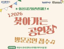 안녕일보 배윤 기자 | 화성시문화관광재단이 오는 4월 1일부터 '2026 찾아가는 공연장’의 방문공연 신청 접수를 시작한다고 밝혔다. ‘찾아가는 공연장’은 지난 2009년부터 이어온 재단의 대표 문화 복지 사업이다. 공연장 문턱을 넘기 어려운 요양원, 아동시설, 장애인복지관 등 문화소외계층을 직접 찾아가 공연을 선사하며, 지역 간 문화 격차 해소와 시민들의 문화 접근성 향상을 목표로 하고 있다. 올해는 총 110회차의 방문공연이 계획되어 있다. 신청 대상은 화성시 관내 복지기관 및 시설 대표자로, 재단 홈페이지를 통해 온라인으로 신청하면 된다. 선정된 기관에는 전문 공연팀이 직접 방문하여 약 30분간의 다채로운 무대를 제공하며, 기관당 연 1회 신청 가능하다. 특히 올해 사업에 참여할 공연단체 공모에는 전국에서 총 457개 팀이 지원해 13대 1이라는 높은 경쟁률을 기록했다. 재단은 서류와 영상, 실연 심사 등 엄격한 과정을 거쳐 최종 35개 팀을 선발했다. 신청 기관은 홈페이지에서 공연팀의 소개와 QR코드를 통한 공연 영상을 확인한 후, 원하는 장르의 팀을 직접 선택할 수 있다. 선택이 어려운 경우 담당자의