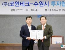 안녕일보 배윤 기자 | 수원특례시가 스마트팩토리 자동화시스템 전문 기업 ㈜코윈테크와 제24호 투자 협약을 체결했다. 수원시와 ㈜코윈테크는 10일 시청 상황실에서 협약을 체결하고, ㈜코윈테크가 수원에 R&D(연구&개발) 시설을 건립하는 데 협력하기로 했다. 협약식에는 이재준 수원특례시장, ㈜코윈테크 이재환 회장이 참석했다. 협약에 따라 ㈜코윈테크는 광교에 로보틱스 전담 R&D 시설을 추가 건립하는 등 적극적인 투자로 수원의 산업 발전을 위해 노력하기로 했다. 수원시는 건립 사업이 원활하게 이뤄지도록 행정·재정적 지원을 한다. 1998년 설립된 ㈜코윈테크는 스마트팩토리(지능형 생산공장) 선도 기업으로 국내외 배터리사에 이차전지 전체 공정 자동화시스템을 공급한다. 핵심사업은 물류 자동화 분야의 로봇·설비 제조다. 최근 AMR(자율이동로봇) 사업을 공격적으로 확대하고 있고, AMR 기술력을 자동차·반도체 등으로 확장할 계획이다. 특히, ESS(에너지 저장장치)분야의 모듈 조립 로봇과 AMR을 동시에 납품하는 등 올해 총 1000억 원 중반대 규모의 공급계약을 체결하기도 했다. ㈜코윈테크 이재환